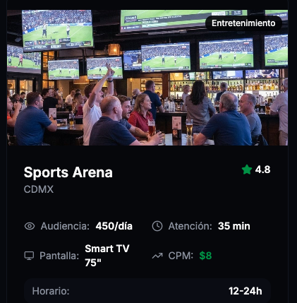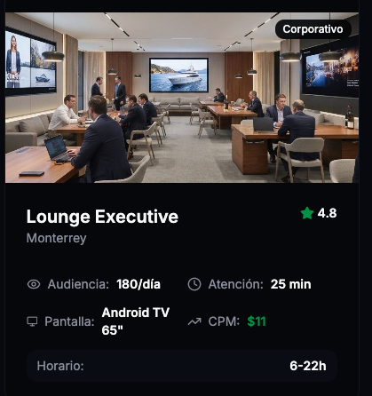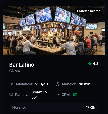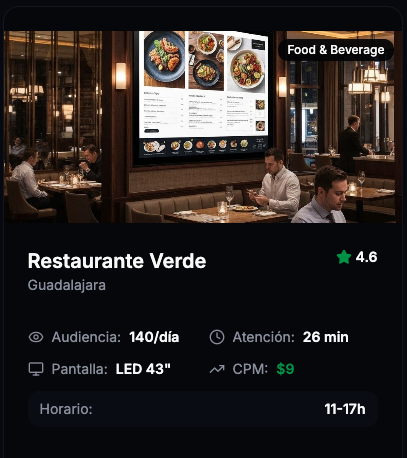 ¿Tienes pantallas en tu restaurante, bar, gimnasio u hotel? Únete a la red nacional y genera ingresos mensuales por pantalla rentando espacios publicitarios.
